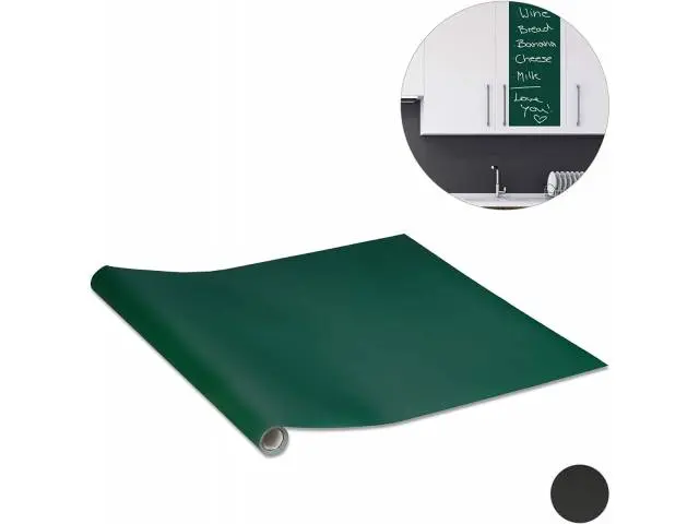 Pizarra autoadhesiva verde.Incluye tizas.Medidas aproximadas del producto: 60 x 200 cm.Se adhiere en todas las superficies.Emula la superficie de un pizarrón, permitiendo escribir con tiza todas las veces que se quiera.